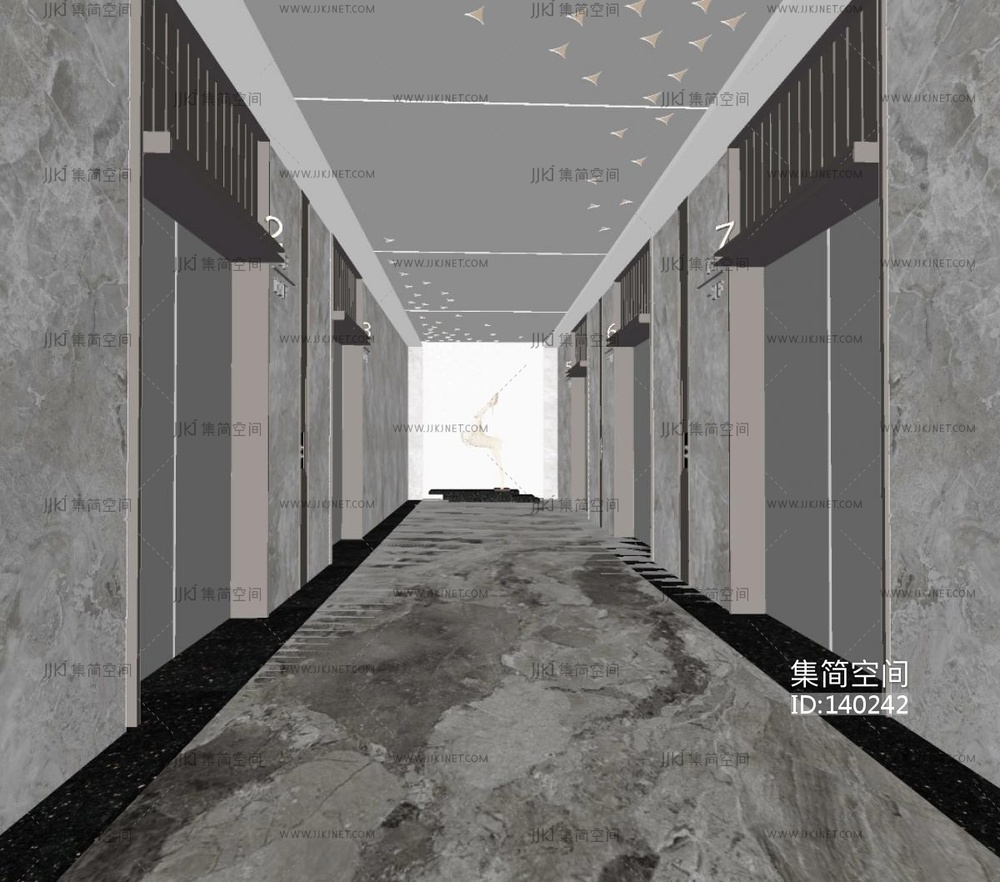 现代酒店电梯厅SU模型su草图模型下载