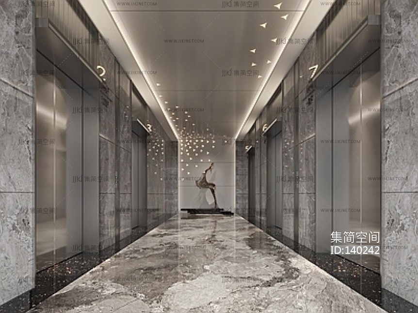 轻奢电梯间 电梯厅su草图模型下载