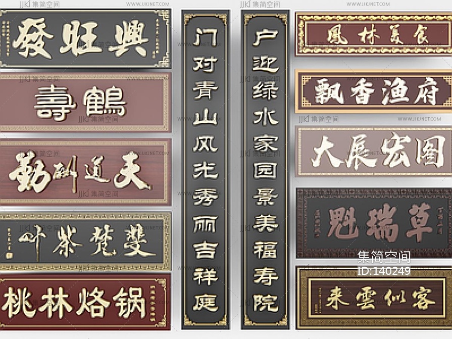 中式广告牌,招牌对联SU模型 (1) su草图模型下载 [模型ID:140249]
