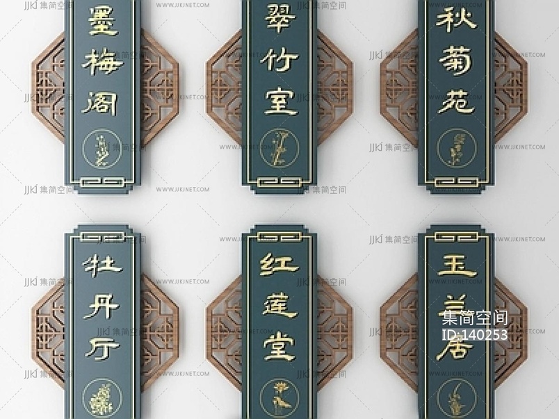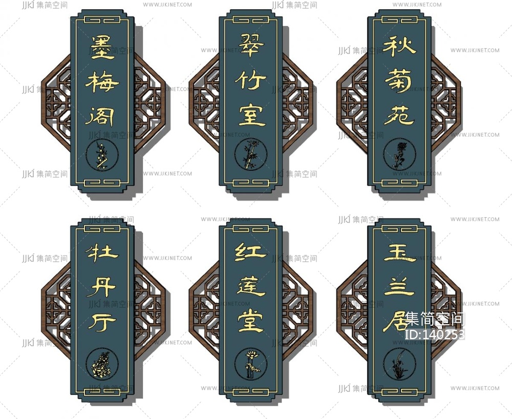 新中式门牌,包间门牌标识SU模型 su草图模型下载 [模型ID:140253]