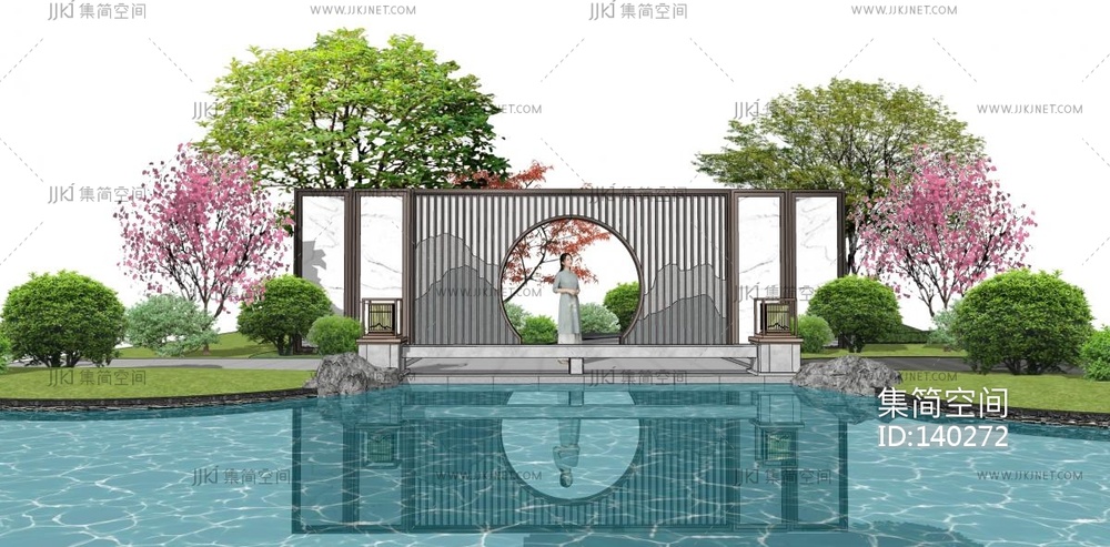 禅意新中式景墙隔断格栅水景 su草图模型下载 [模型ID:140272]