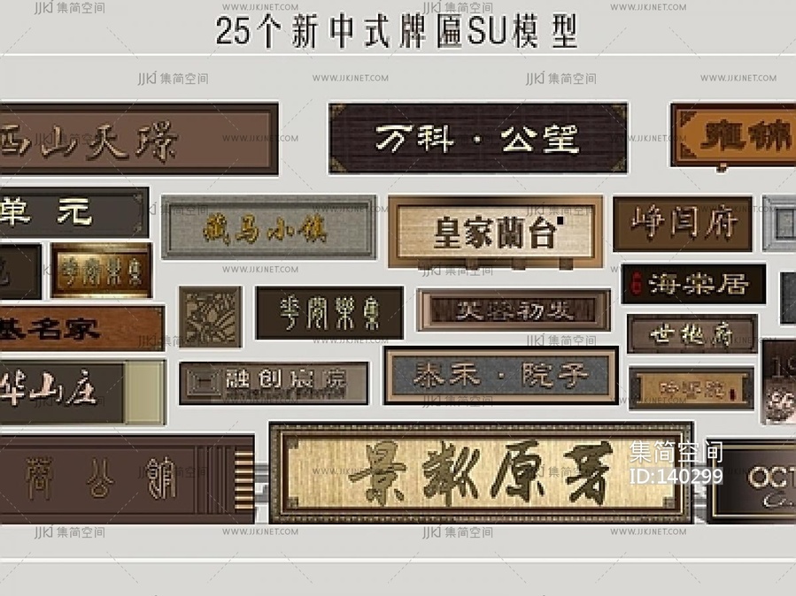 新中式广告牌,牌匾SU模型 su草图模型下载 [模型ID:140299]