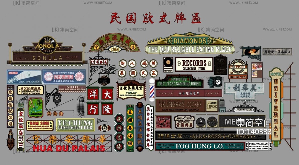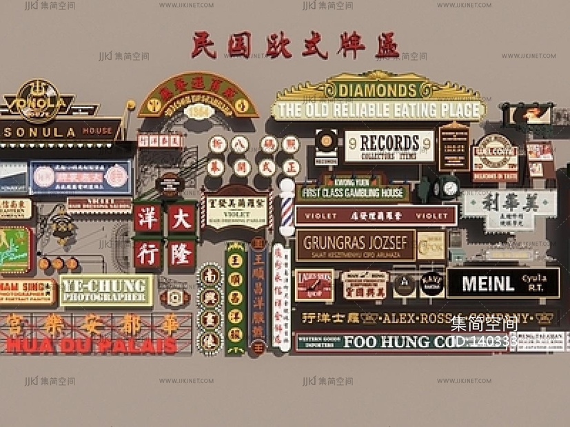 民国风商业牌匾SU模型 su草图模型下载 [模型ID:140333]