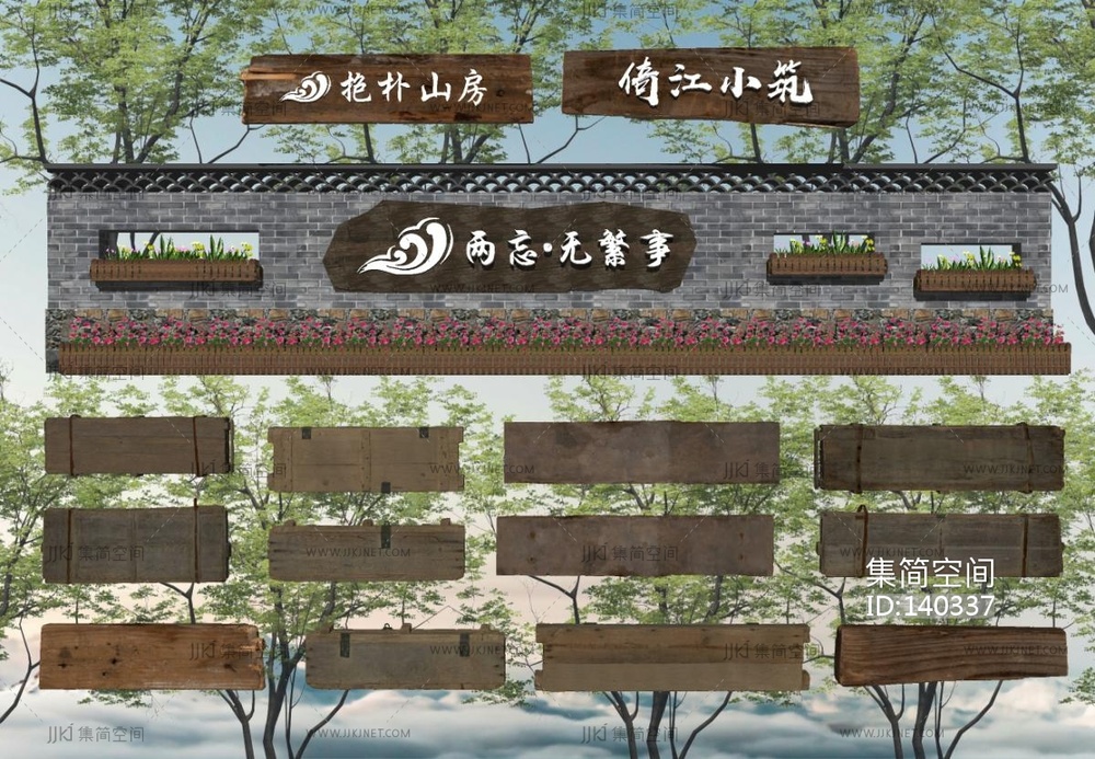 中式牌匾,民宿店招SU模型 su草图模型下载 [模型ID:140337]