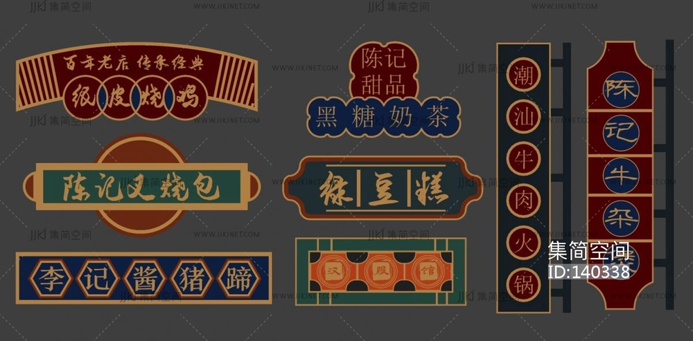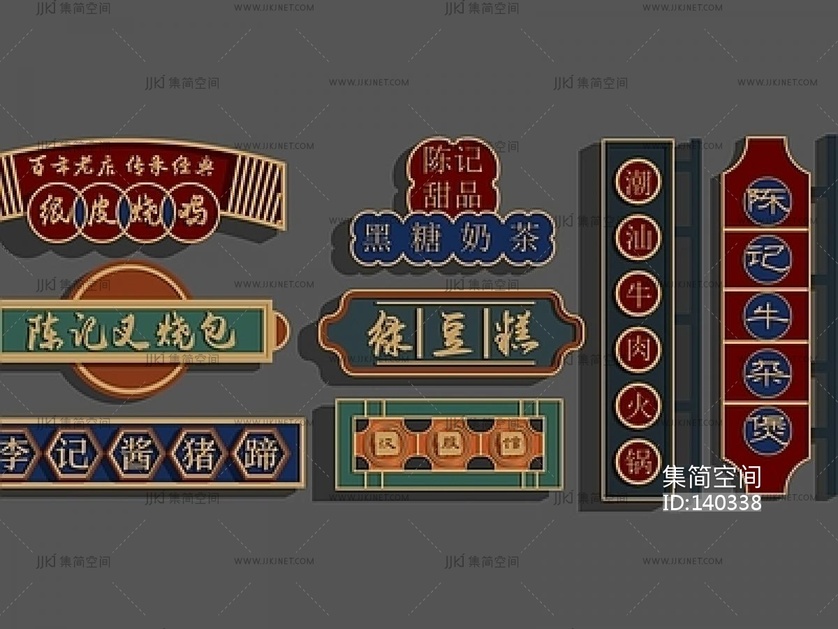 国潮招牌,牌匾SU模型 su草图模型下载 [模型ID:140338]