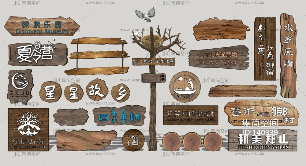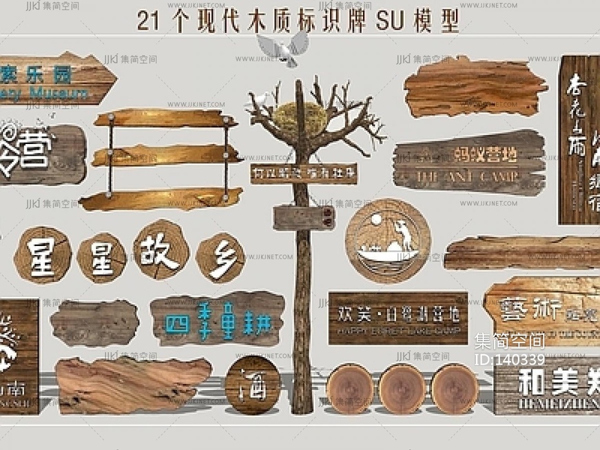 现代指示牌,木牌匾SU模型 su草图模型下载 [模型ID:140339]
