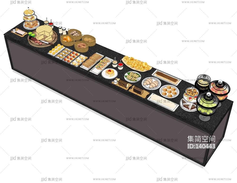 现代糕点,自助餐桌SU模型 su草图模型下载 [模型ID:140443]