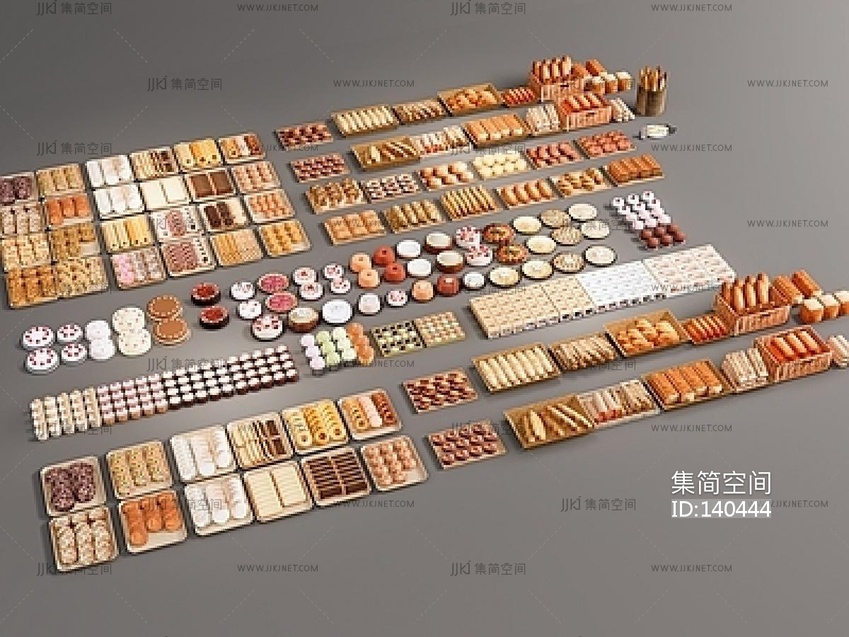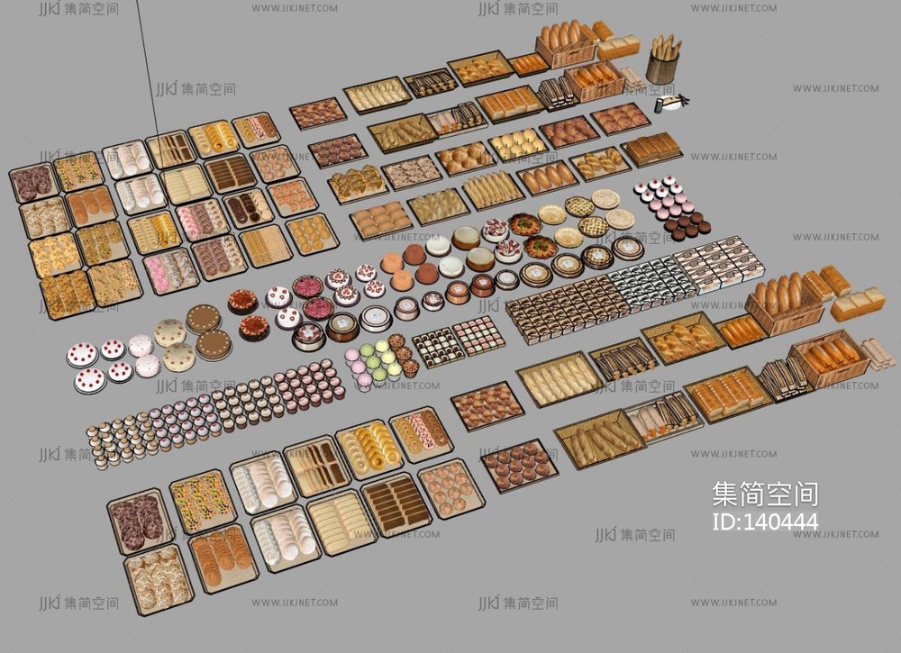 面包食物,糕点甜品组合SU模型 su草图模型下载 [模型ID:140444]
