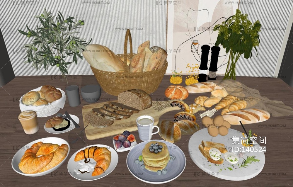 面包西点组合SU模型 su草图模型下载 [模型ID:140524]