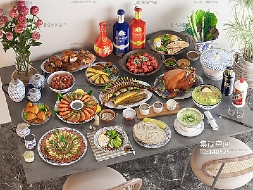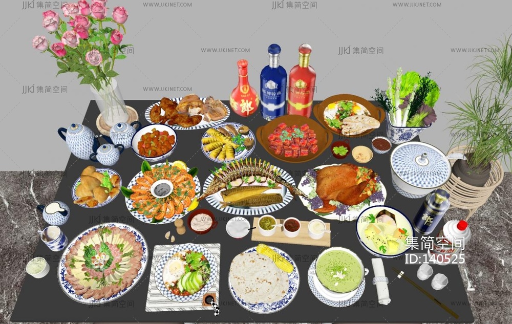 食物中餐组合SU模型 su草图模型下载 [模型ID:140525]