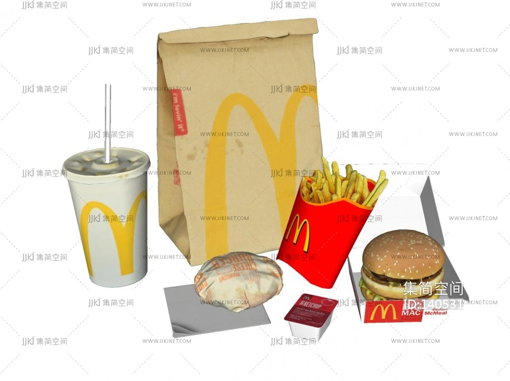 麦当劳薯条,汉堡,可乐SU模型 su草图模型下载 [模型ID:140531]