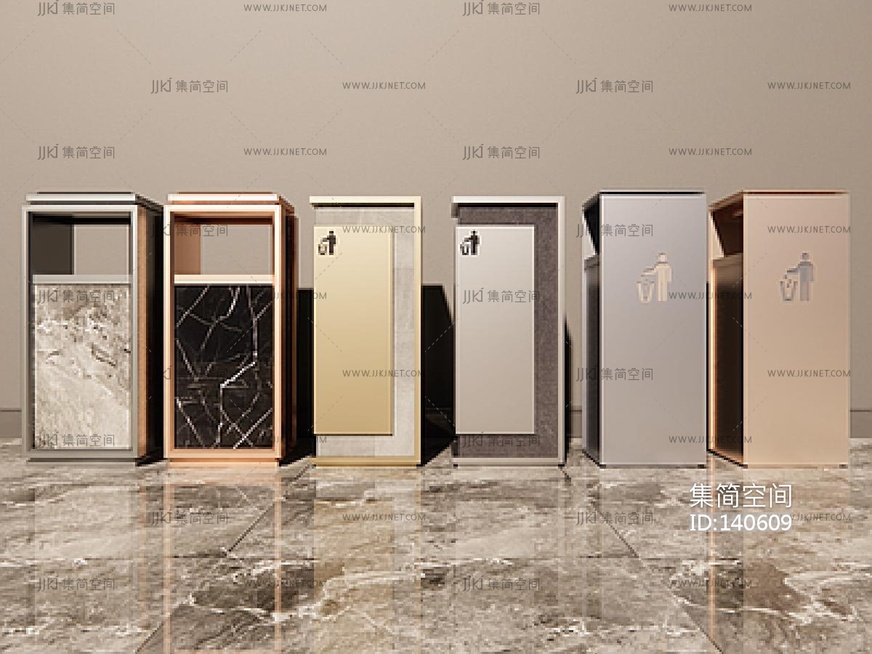 现代垃圾筒,酒店垃圾筒SU模型 su草图模型下载 [模型ID:140609]