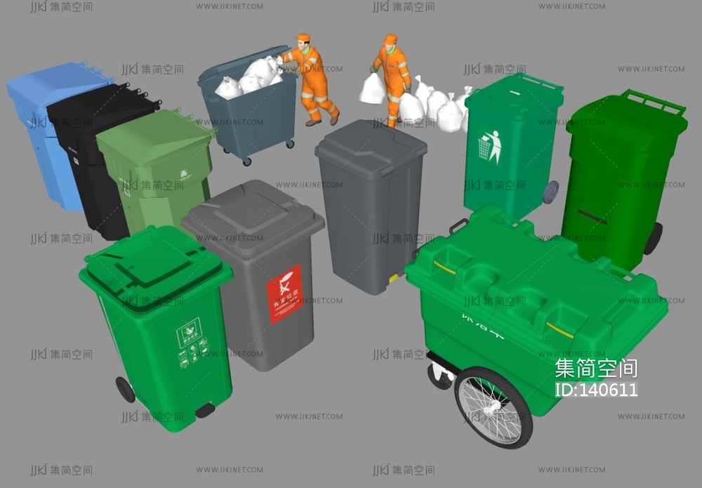 现代户外移动垃圾桶SU模型 su草图模型下载 [模型ID:140611]