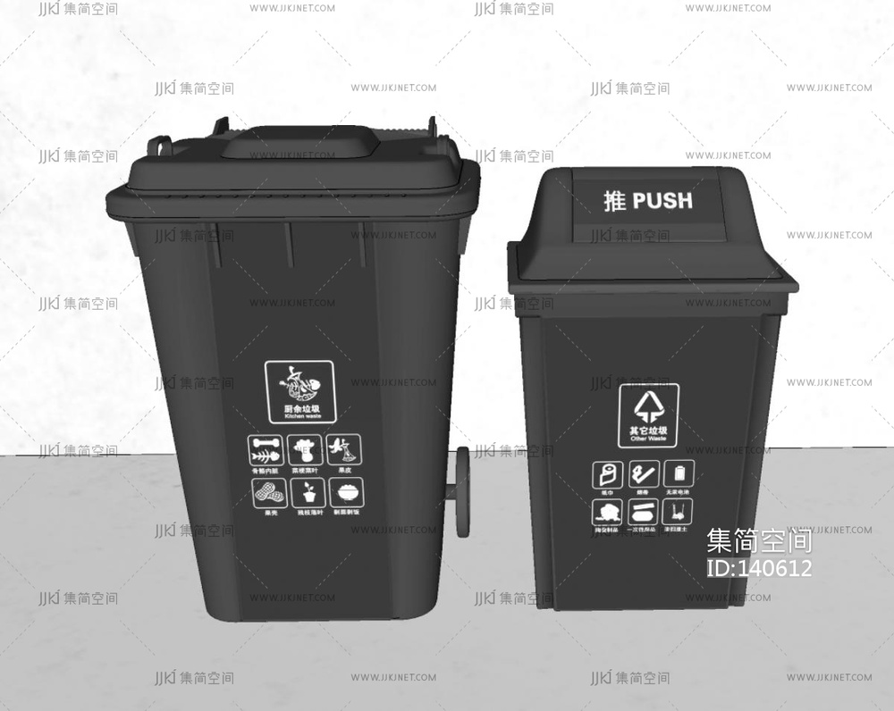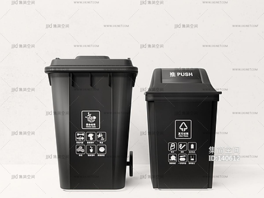 现代户外垃圾桶,垃圾箱SU模型 su草图模型下载 [模型ID:140612]