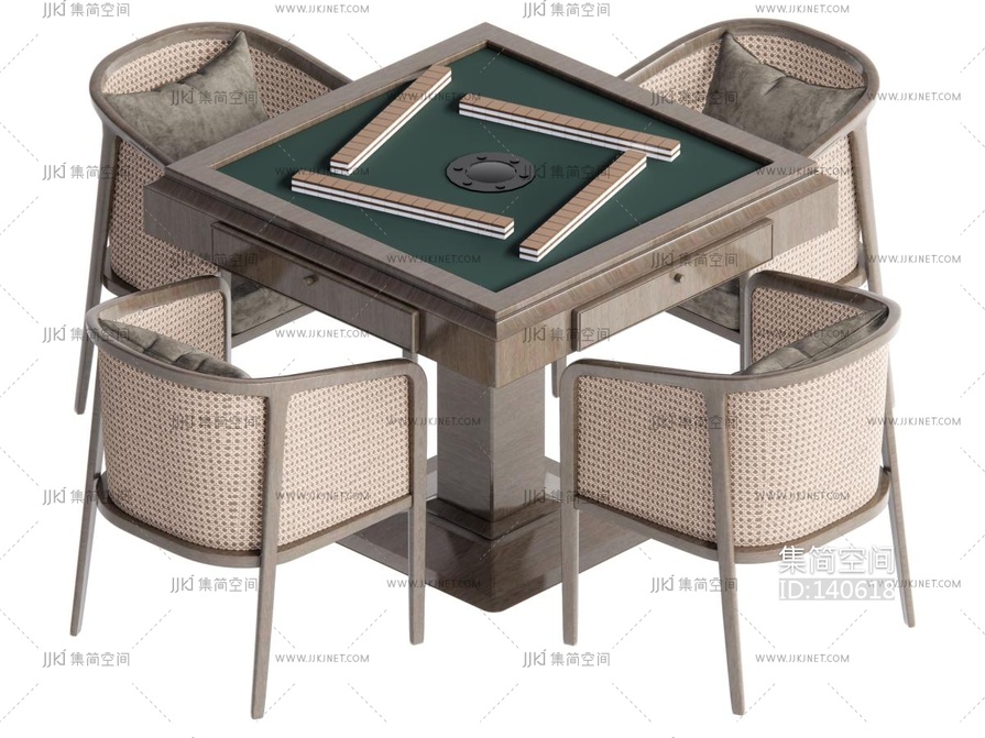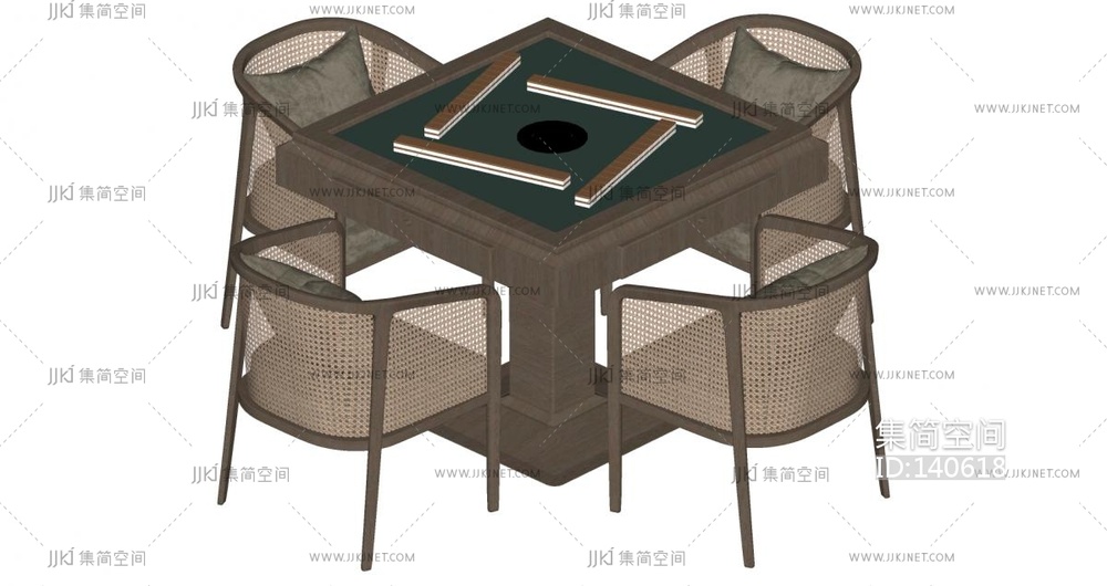 新中式棋牌室桌 麻将桌 自动麻将桌 su草图模型下载 [模型ID:140618]