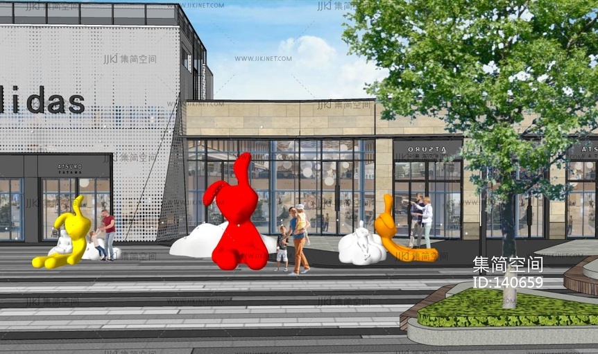 100-现代玩偶云朵座凳雕塑小品,商业景观兔子,商业街SU模型 su草图模型下载 [模型ID:140659]
