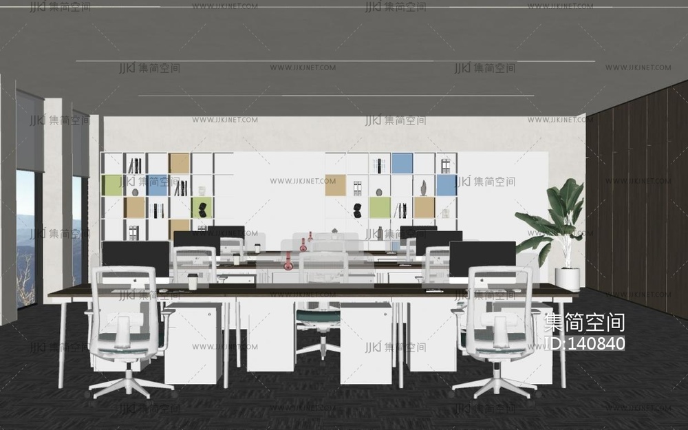 现代公共办公室_开放办公室SU模型su草图模型下载