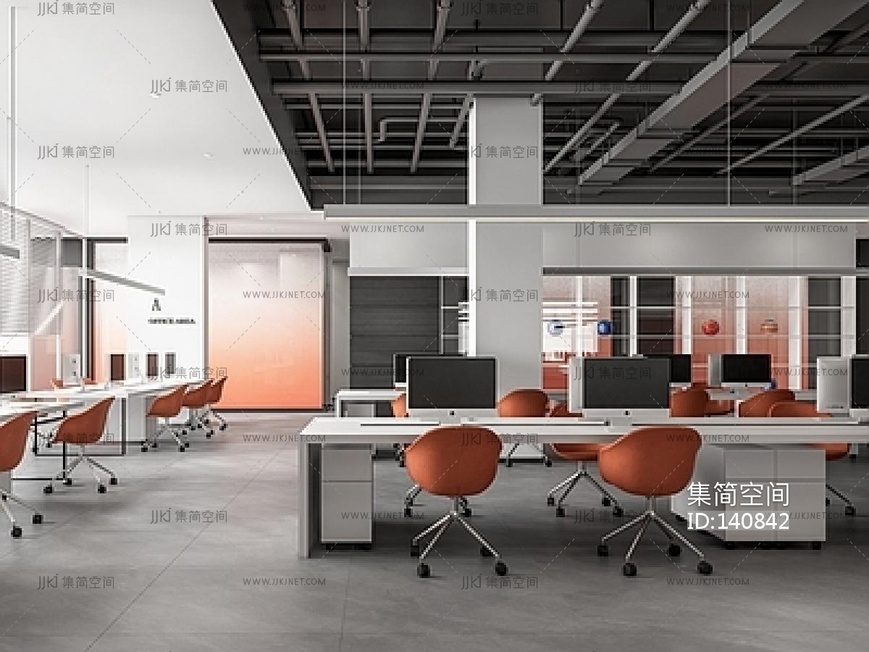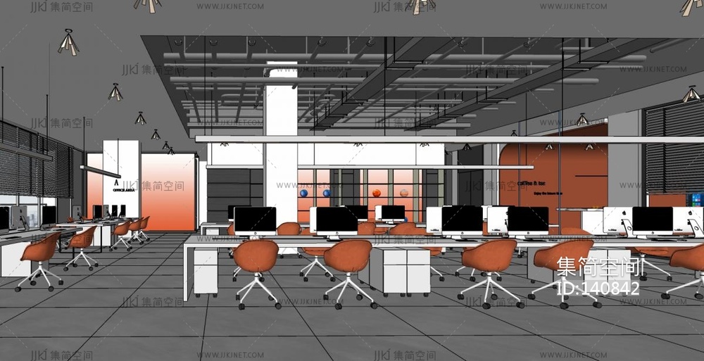 现代开敞办公区SU模型 su草图模型下载 [模型ID:140842]