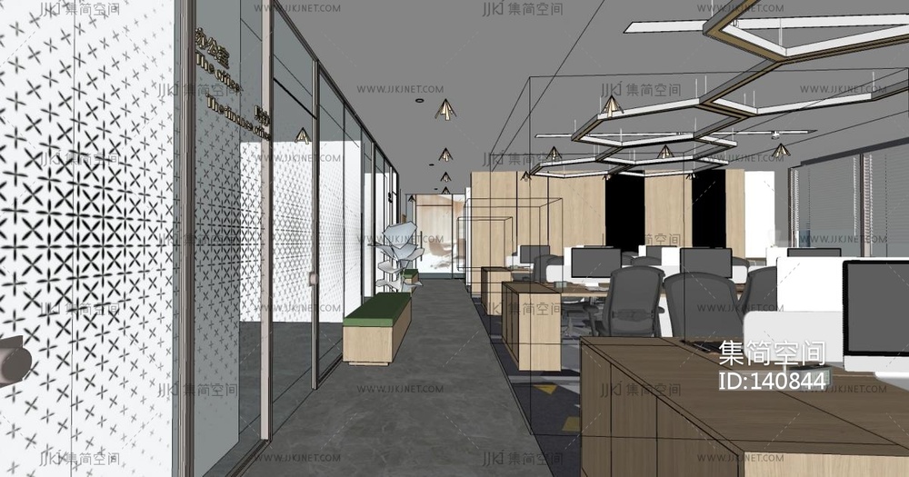 现代公共办公区SU模型 su草图模型下载 [模型ID:140844]