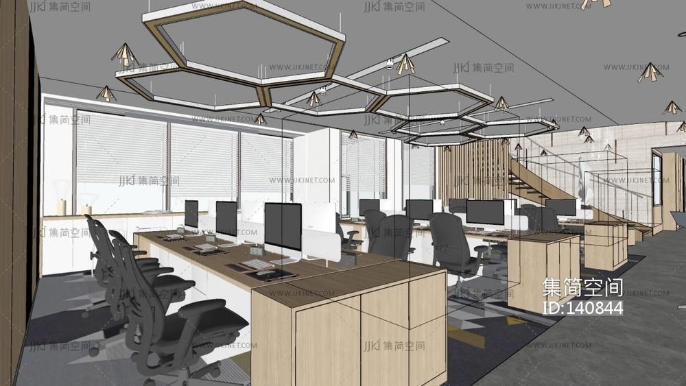 现代公共办公室_开放办公室SU模型su草图模型下载