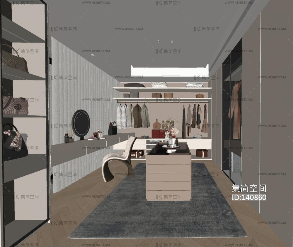 现代衣帽间SU模型 su草图模型下载 [模型ID:140860]