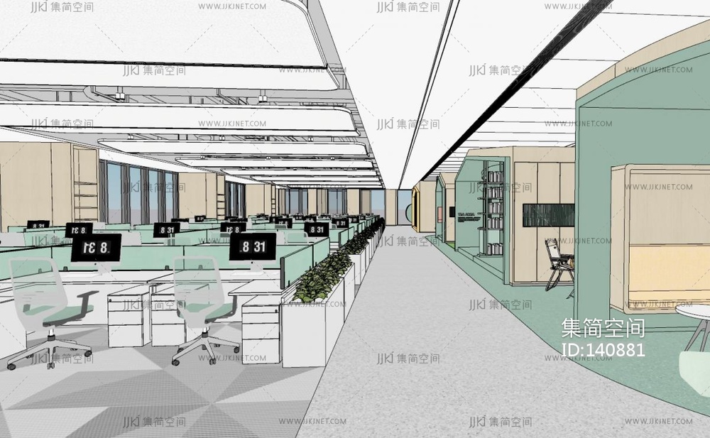 现代开放公共办公区SU模型 su草图模型下载 [模型ID:140881]