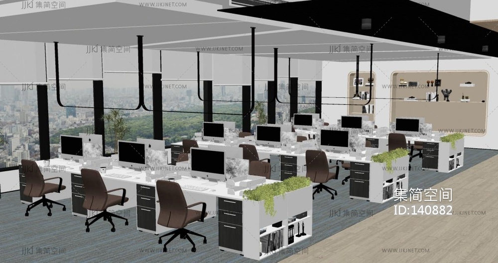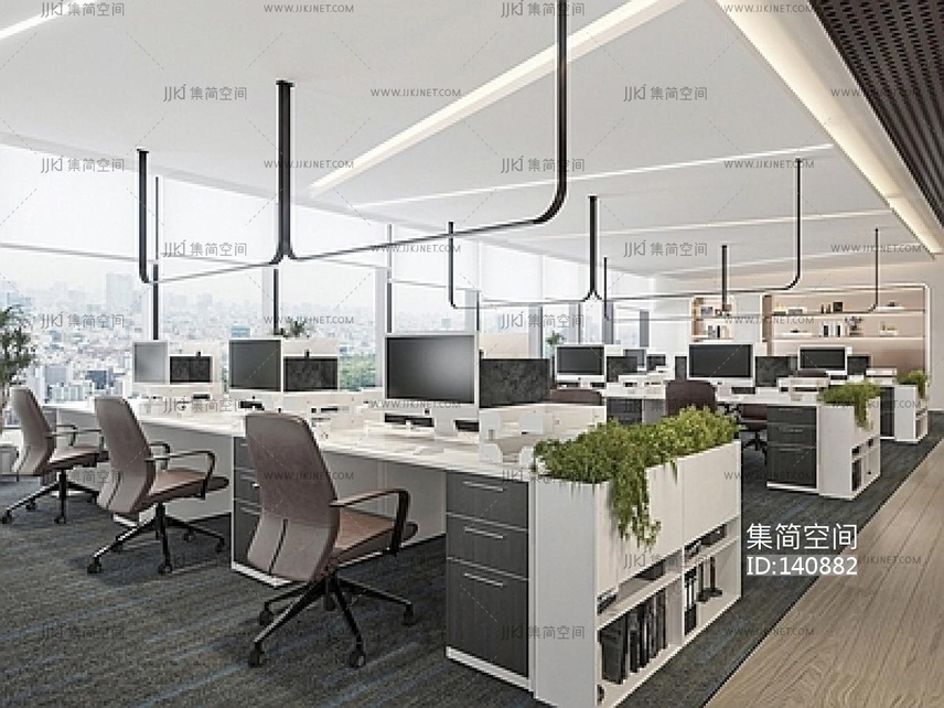 现代公共办公室_开放办公室SU模型su草图模型下载