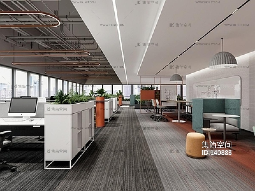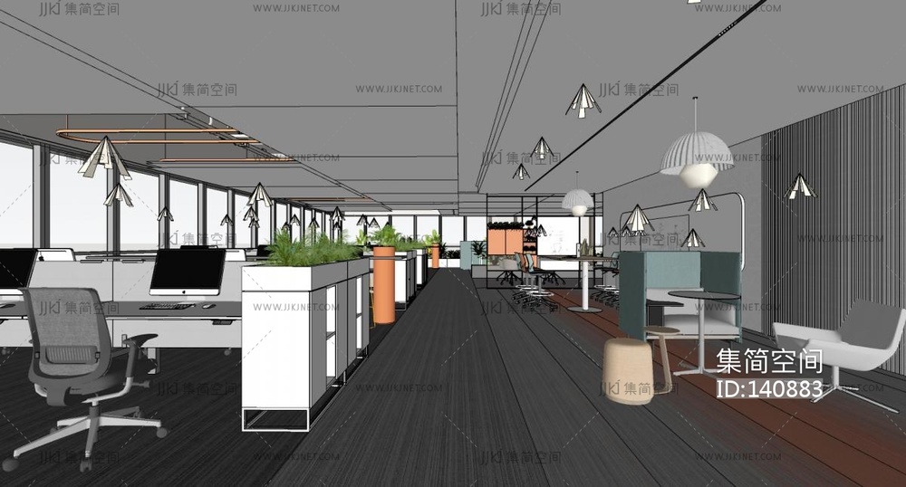 现代公共办公室_开放办公室SU模型su草图模型下载