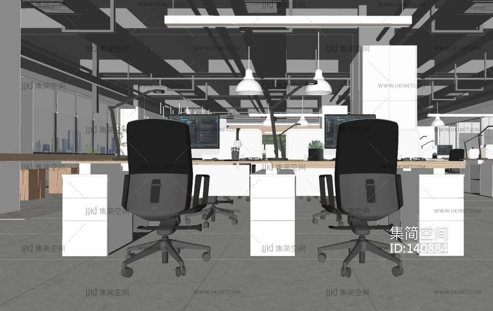 现代公共办公室_开放办公室SU模型su草图模型下载