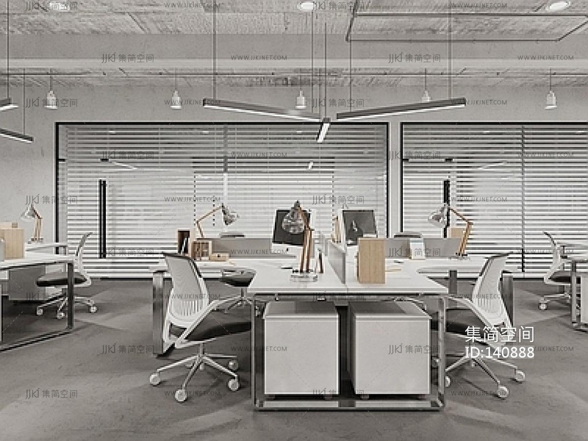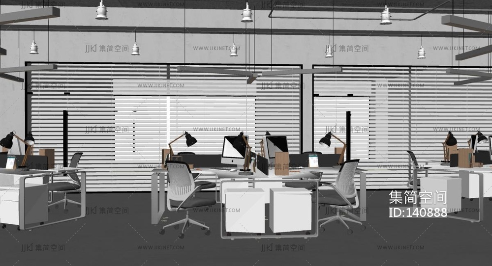 现代公共办公室_开放办公室SU模型su草图模型下载