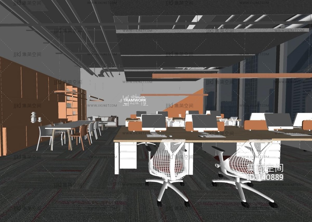 现代公共办公室_开放办公室SU模型su草图模型下载