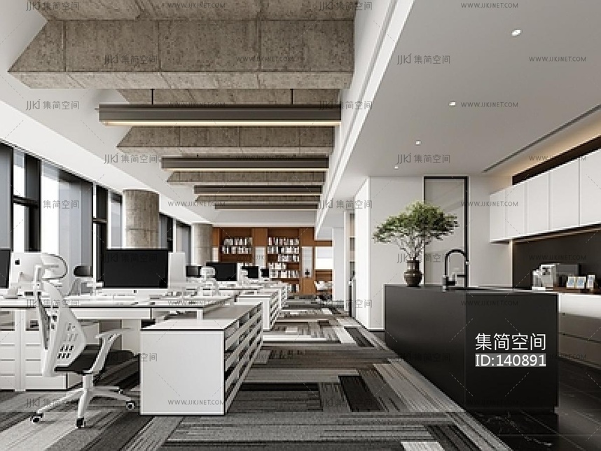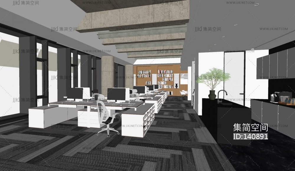 现代办公室员工区SU模型 su草图模型下载 [模型ID:140891]