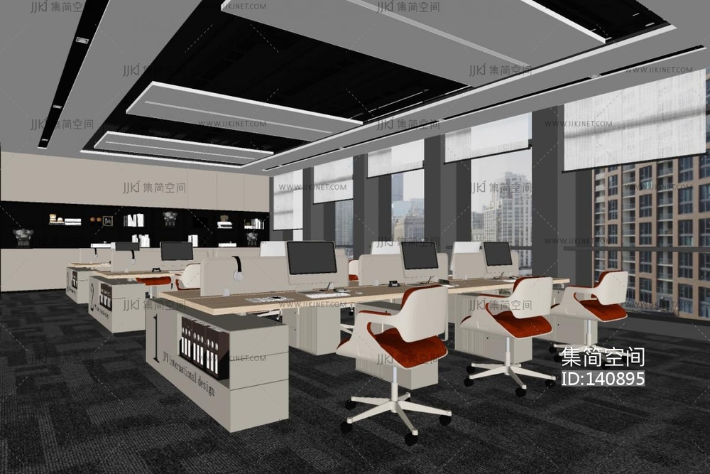 现代公共办公室_开放办公室SU模型su草图模型下载