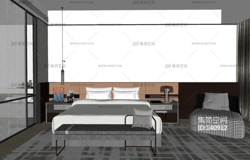 现代酒店客房SU模型 su草图模型下载 [模型ID:140912]