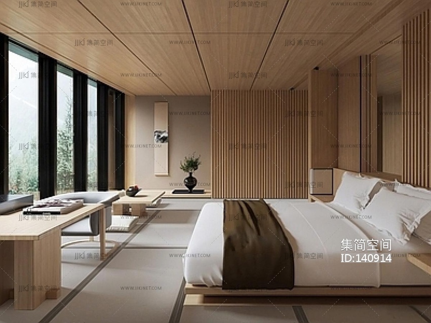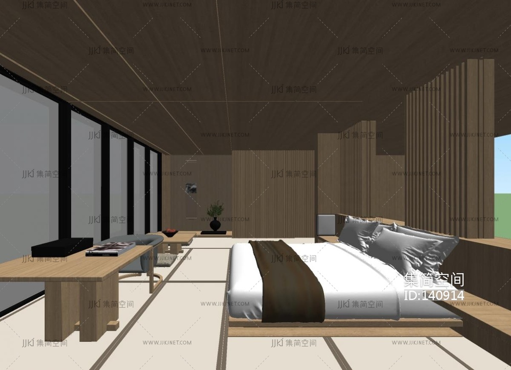 日式轻奢酒店客房SU模型 su草图模型下载 [模型ID:140914]