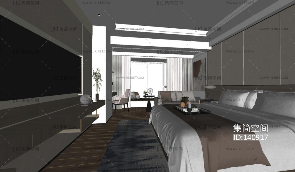 现代酒店客房SU模型 su草图模型下载 [模型ID:140917]