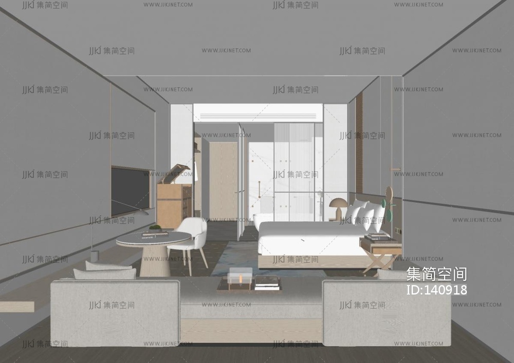 现代酒店客房SU模型 su草图模型下载 [模型ID:140918]