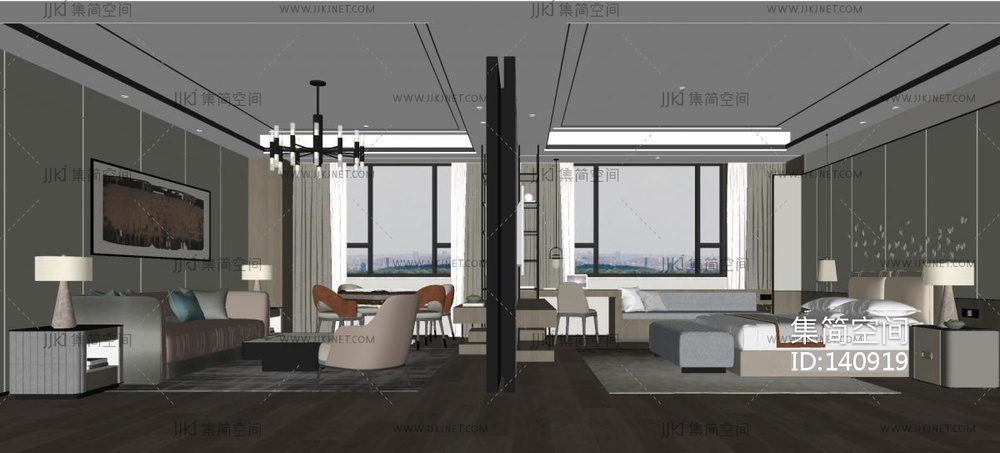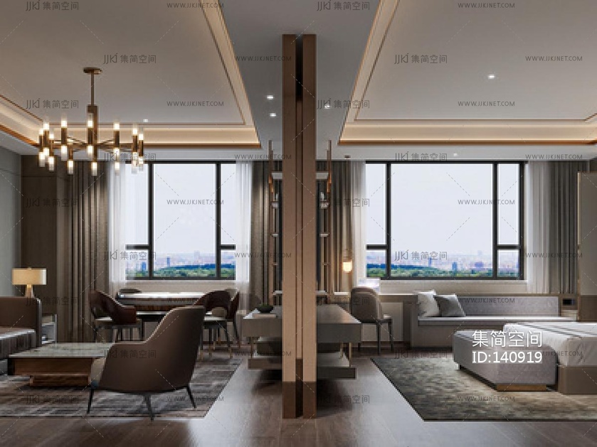 新中式酒店客房SU模型 su草图模型下载 [模型ID:140919]
