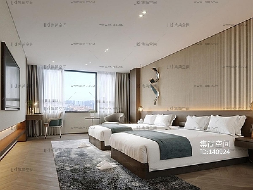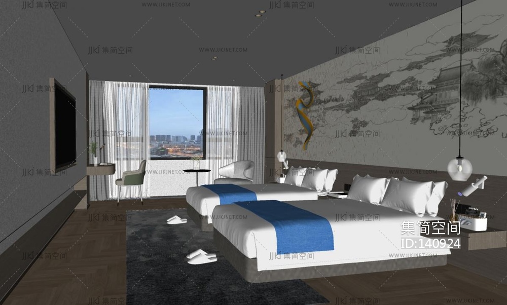 现代酒店客房SU模型 su草图模型下载 [模型ID:140924]