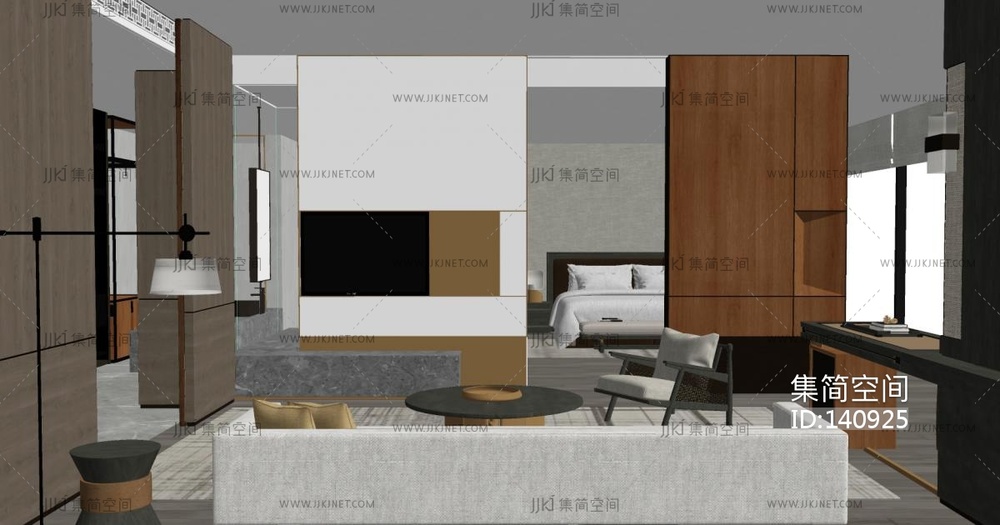 现代酒店客房SU模型 su草图模型下载 [模型ID:140925]