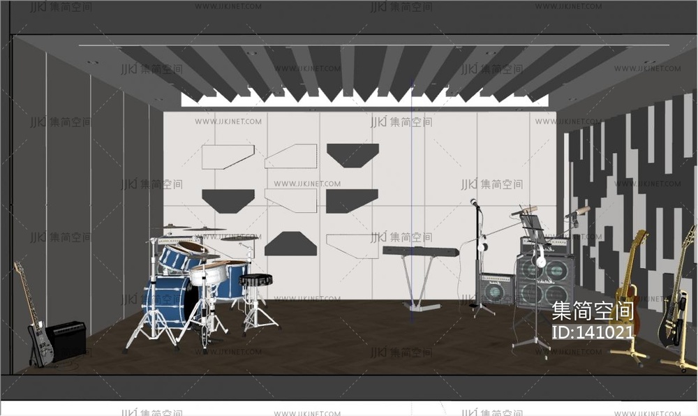 现代音乐室,架子鼓,音响 su草图模型下载 [模型ID:141021]