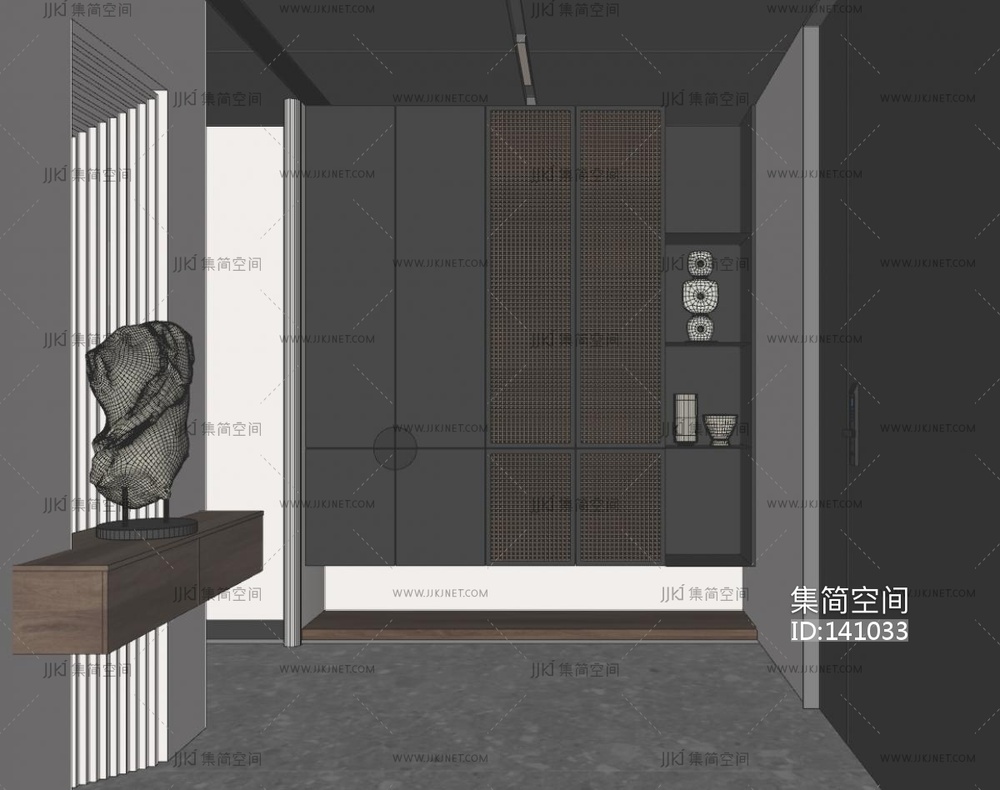 侘寂风复古玄关 su草图模型下载 [模型ID:141033]