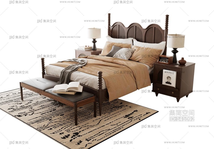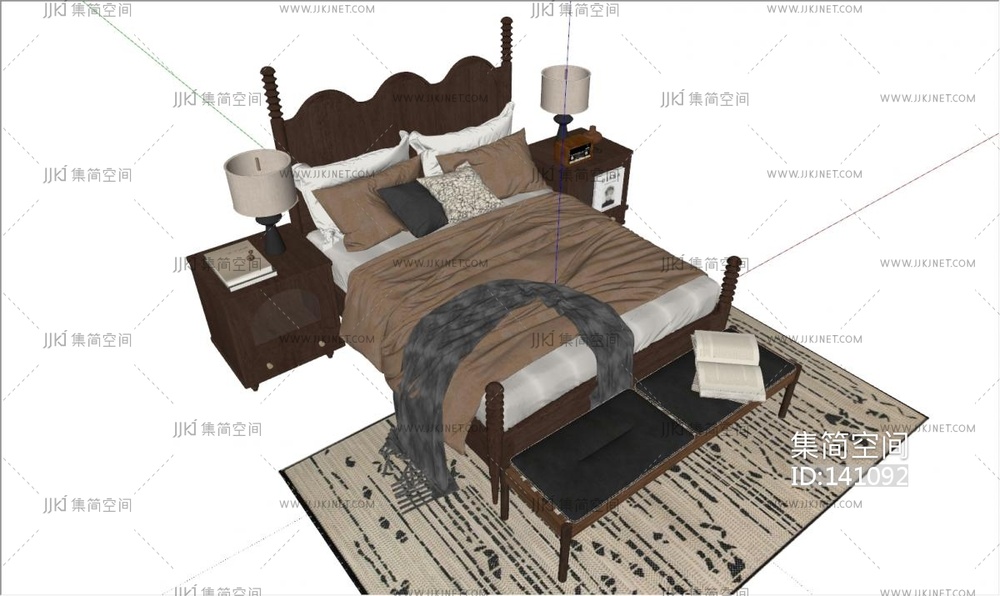 美式中古风双人床 su草图模型下载 [模型ID:141092]