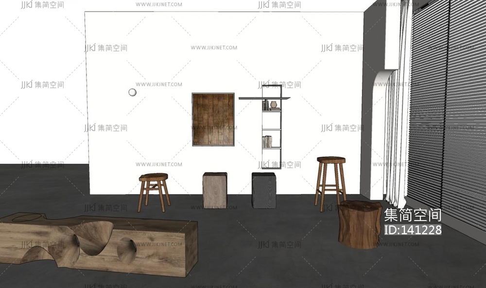 现代实木凳子, su草图模型下载 [模型ID:141228]