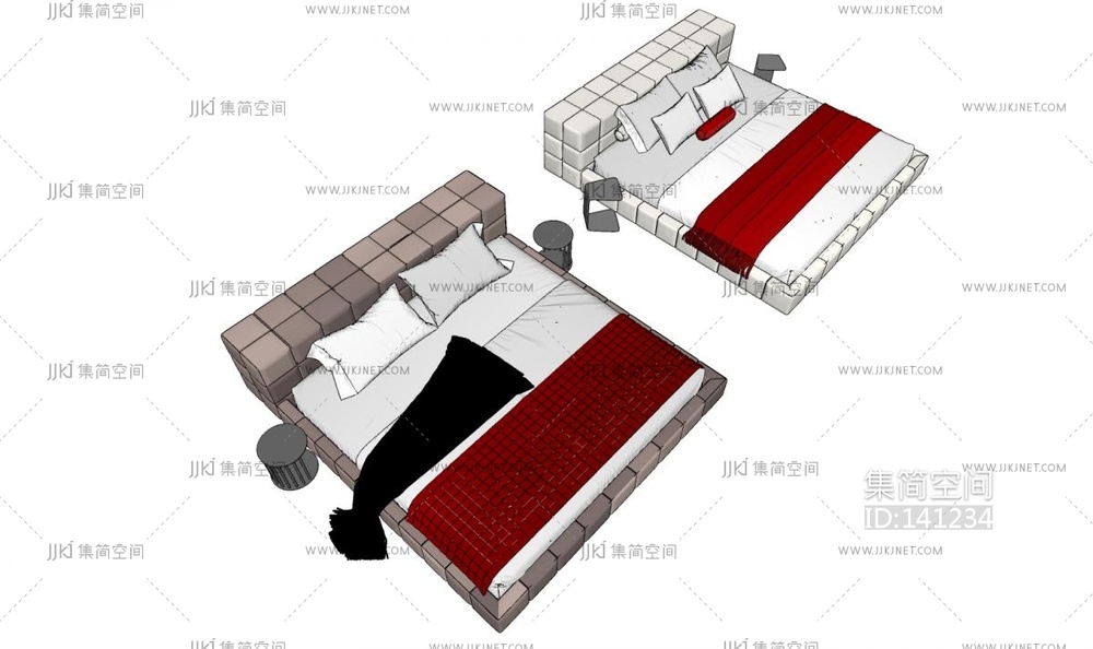 现代双人床_ su模型下载 su草图模型下载 [模型ID:141234]