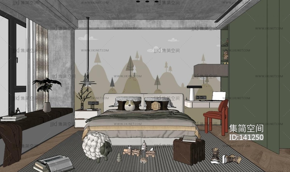 通用儿童房女孩房, su草图模型下载 [模型ID:141250]