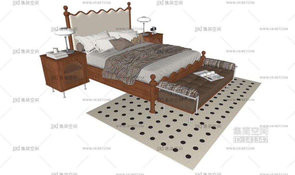 -法式复古,中古风双人床 su草图模型下载 [模型ID:141347]