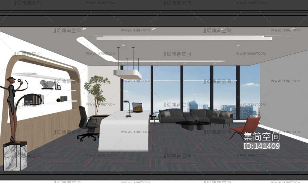 现代经理办公室_办公桌, su草图模型下载 [模型ID:141409]
