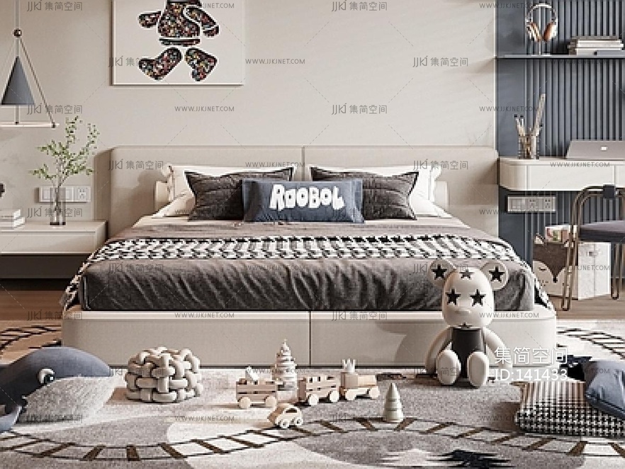 现代儿童双人床SU模型 su草图模型下载 [模型ID:141433]