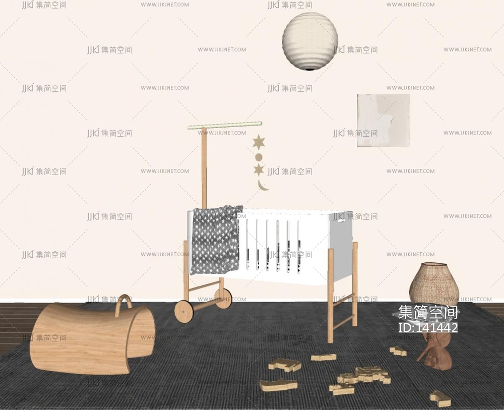 现代婴儿床,吊灯,玩具SU模型 su草图模型下载 [模型ID:141442]